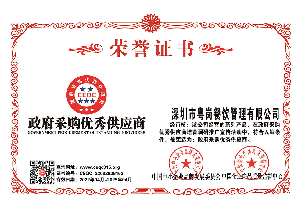 深圳市粵崗餐飲管理有限公司,是一家集蔬菜種植和農(nóng)副產(chǎn)品配送為一體的專業(yè)型餐飲公司,主要為學(xué)校、工廠企事業(yè)機(jī)關(guān)單位提供蔬菜和農(nóng)副產(chǎn)品配送服務(wù)。公司自成立以來始終以質(zhì)優(yōu)價(jià)廉、服務(wù)至上為原則,嚴(yán)格按照ISO:9001國(guó)際標(biāo)準(zhǔn)體系進(jìn)行管理。同時(shí)建立了行業(yè)領(lǐng)先的配送中心、大型冷庫(kù)和保鮮庫(kù)、檢測(cè)中心以及專業(yè)化的配送團(tuán)隊(duì),能長(zhǎng)期安全、穩(wěn)定、準(zhǔn)時(shí)的配送貨物。我們所有蔬菜均經(jīng)過初步加工、無黃葉,無泥沙等雜質(zhì),利用率達(dá)97%以上...保障向用戶提供的各類食材的衛(wèi)生和質(zhì)量。公司為了適應(yīng)不同客戶的需求,配有專業(yè)人員和配送車輛,實(shí)行“一對(duì)一”的服務(wù)體制,一心一意的為客戶服務(wù),秉承粵崗誠(chéng)實(shí)守信、服務(wù)第一、客戶至上的服務(wù)標(biāo)準(zhǔn),真正讓客戶花最少的錢吃最好的菜。粵崗多年來何以欣欣向榮,因?yàn)槲覀冎乐挥杏掠趽?dān)當(dāng)責(zé)任,才能承擔(dān)更大的責(zé)任,就是因?yàn)?粵崗員工貫徹公司態(tài)度決定一切、細(xì)節(jié)決定成敗的真理,從質(zhì)量抓起,從服務(wù)做起,才創(chuàng)造了如今的規(guī)模化供應(yīng)、統(tǒng)一性配送、專業(yè)化服務(wù)的粵崗。